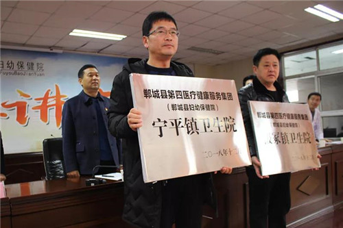 楊軍宣讀了《鄲城縣第四醫(yī)療健康服務(wù)集團(tuán)關(guān)于成立全面推進(jìn)醫(yī)療健康服務(wù)共同體建設(shè)領(lǐng)導(dǎo)小組的通知》,王斌宣讀了《鄲城縣第四醫(yī)療健康服務(wù)集團(tuán)關(guān)于成立醫(yī)療健康服務(wù)共同體醫(yī)院的通知》。第四醫(yī)療健康服務(wù)集團(tuán)成員單位寧平鎮(zhèn)衛(wèi)生院院長許向東作代表發(fā)言。