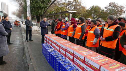 慰問中,皇甫立新、劉國慶一行首先來到新區(qū)“三公開”廣場,慰問堅守一線的環(huán)衛(wèi)工人,向他們致以新春的祝福,并對他們在過去一年里付出的辛勤勞動表示衷心感謝。皇甫立新指出,一年來,環(huán)衛(wèi)工人們起早貪黑、兢兢業(yè)業(yè),為改善居民生活環(huán)境和提升城市形象付出很多心血和汗水,取得了良好效果,城區(qū)環(huán)境和城市面貌有了很大改善,得到了社會各界的一致好評,希望環(huán)衛(wèi)工人們在春節(jié)期間繼續(xù)發(fā)揚奉獻精神,把縣城衛(wèi)生打造的更加干凈、整潔,讓廣大市民和回家過年的群眾能深刻感受到縣城環(huán)境的新變化,過一個干凈舒適愉快的春節(jié)。