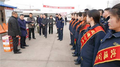 在縣公交公司,皇甫立新首先向全體干部職工致以節(jié)日的問候,對他們一年來為全縣人民安全順利出行做出的貢獻表示感謝。在認真聽取有關負責人關于節(jié)日期間增開班車和車次的匯報后,皇甫立新說,公交車作為公共交通運輸體系中的重要組成部分,不僅在完善城市交通運輸格局、方便市民出行方面發(fā)揮著重要作用,同時也是城市形象的象征。希望堅守崗位的公交職工要繼續(xù)提供優(yōu)質(zhì)服務,文明安全駕駛,為居民在春節(jié)期間走親訪友和安全出行提供方便、搞好服務,展示出沈丘公交公司員工的良好素質(zhì)和良好形象。并叮囑公交公司負責人要合理安排好職工的工作和生活,為廣大一線工作人員安心工作提供堅實的后勤保障,讓他們更加舒心愉快地服務廣大群眾。