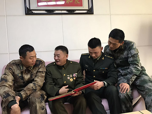 柳東坡、劉威、崔二偉3名年輕軍官聽完老英雄的講述后心靈受到極大震撼,一度落下激動地淚花。他們向海水干匯報了各自在部隊立功受獎的情況。“強軍先鋒”柳東坡現(xiàn)為80集團軍某旅副營長,在斯洛伐克國際特種兵比武、中俄聯(lián)演以及全軍特種兵比武中表現(xiàn)優(yōu)異,先后榮立一等功、二等功各一次,三等功3次;“天山兵王”劉威現(xiàn)任新疆軍區(qū)某團副連長,在國際軍事比賽、軍區(qū)偵察兵比武中脫穎而出、成績顯著,入伍來先后榮立一等功、二等功各一次,三等功2次;“狙擊神槍手”崔二偉曾被總參謀部表彰為“全軍優(yōu)秀狙擊手”,先后榮立一等功、二等功各一次。