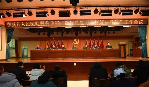 2月15日下午,鄲城縣人民醫(yī)院在門診五樓召開脫貧攻堅“做好總復習,打好決勝戰(zhàn)”工作會議,傳達落實縣衛(wèi)計委扶貧工作會議精神,部署脫貧攻堅工作。鄲城縣人民醫(yī)院院長于健偕全體院領(lǐng)導班子出席會議,院黨委書記高飛主持。健康扶貧辦、醫(yī)保、財務(wù)、宣教、醫(yī)政、護理、藥事、醫(yī)療裝備等肩負健康扶貧任務(wù)的職能科室負責人、全體護士長、3個幫扶村扶貧隊長及全體扶貧隊員200余人參加會議。