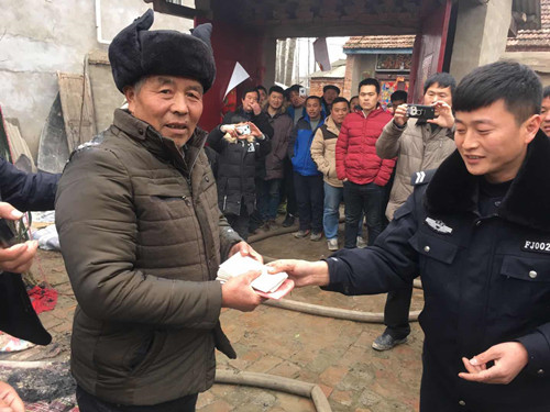 2月17日下午3時許,鄲城縣南豐鎮(zhèn)徐寨行政村徐大莊一村民使用地鍋后忘記滅火發(fā)生火災,鄲城縣公安局一村一警張振偉冒險進入火中,幫助轉移出1萬元現(xiàn)金和重要證件。