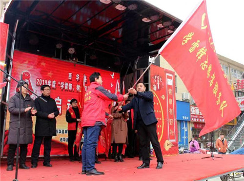9時30分,啟動儀式開始??h委組織部有關領導發(fā)表了熱情洋溢的致辭;縣非公黨工委書記、縣工商和質(zhì)監(jiān)局局長李永民向西華縣無人機產(chǎn)業(yè)園、西華縣真愛婦產(chǎn)科醫(yī)院、西華縣城市公共交通有限公司等7家非公企業(yè)黨支部學雷鋒志愿服務隊代表授旗,并動員廣大非公企業(yè)黨支部、個私經(jīng)營者開展形式多樣、豐富多彩的學雷鋒志愿服務活動;東方國際商業(yè)有限公司黨支部黨員志愿者代表作了情真意切地表態(tài)發(fā)言。最后,縣委宣傳部有關領導宣布活動正式啟動。