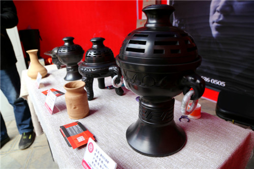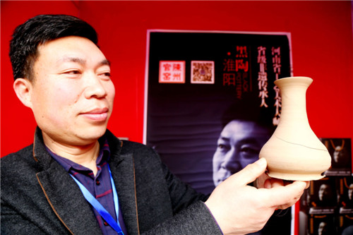 在河南省非物質(zhì)文化遺產(chǎn)黑陶技藝展示臺前,代表性傳承人、淮陽縣工藝美術(shù)家協(xié)會主席張輝,正在向游客介紹黑陶的發(fā)展歷程。隨處可見的普通膠泥,經(jīng)過匠人之手便可變成精美的黑陶器具,這讓眾人感嘆不已。張輝說,這是老祖宗留下的智慧結(jié)晶,也是非物質(zhì)文化遺產(chǎn)的寶貴財富,他要永遠傳承下去。
