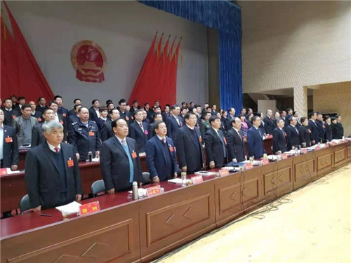 上午8點30分,大會主席團(tuán)常務(wù)主席皇甫立新宣布大會開幕,與會人員全體起立,會場響起雄壯的國歌聲。