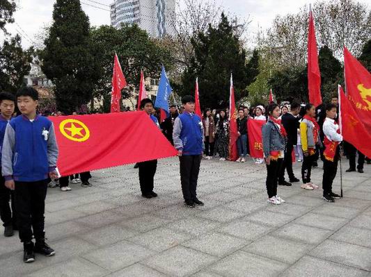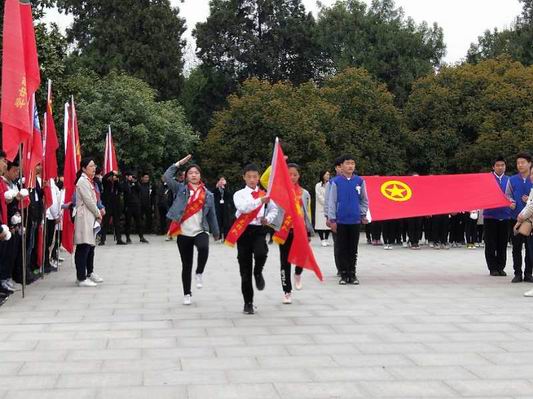 周口十九中參加周口共青團舉辦的“青春心向黨,建功新時代”祭掃英烈活動。