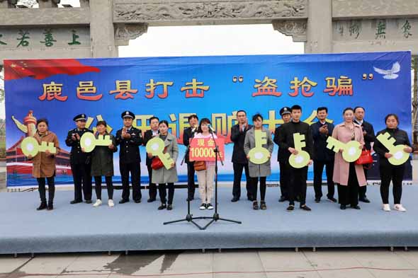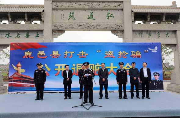 4月25日上午,鹿邑縣召開打擊“盜搶騙”專項(xiàng)行動(dòng)公開退贓大會(huì)??h委常委、政法委書記侯自峰出席會(huì)議并講話??h公、檢、法、司等有關(guān)部門負(fù)責(zé)人與群眾代表近300人參加退贓大會(huì)。