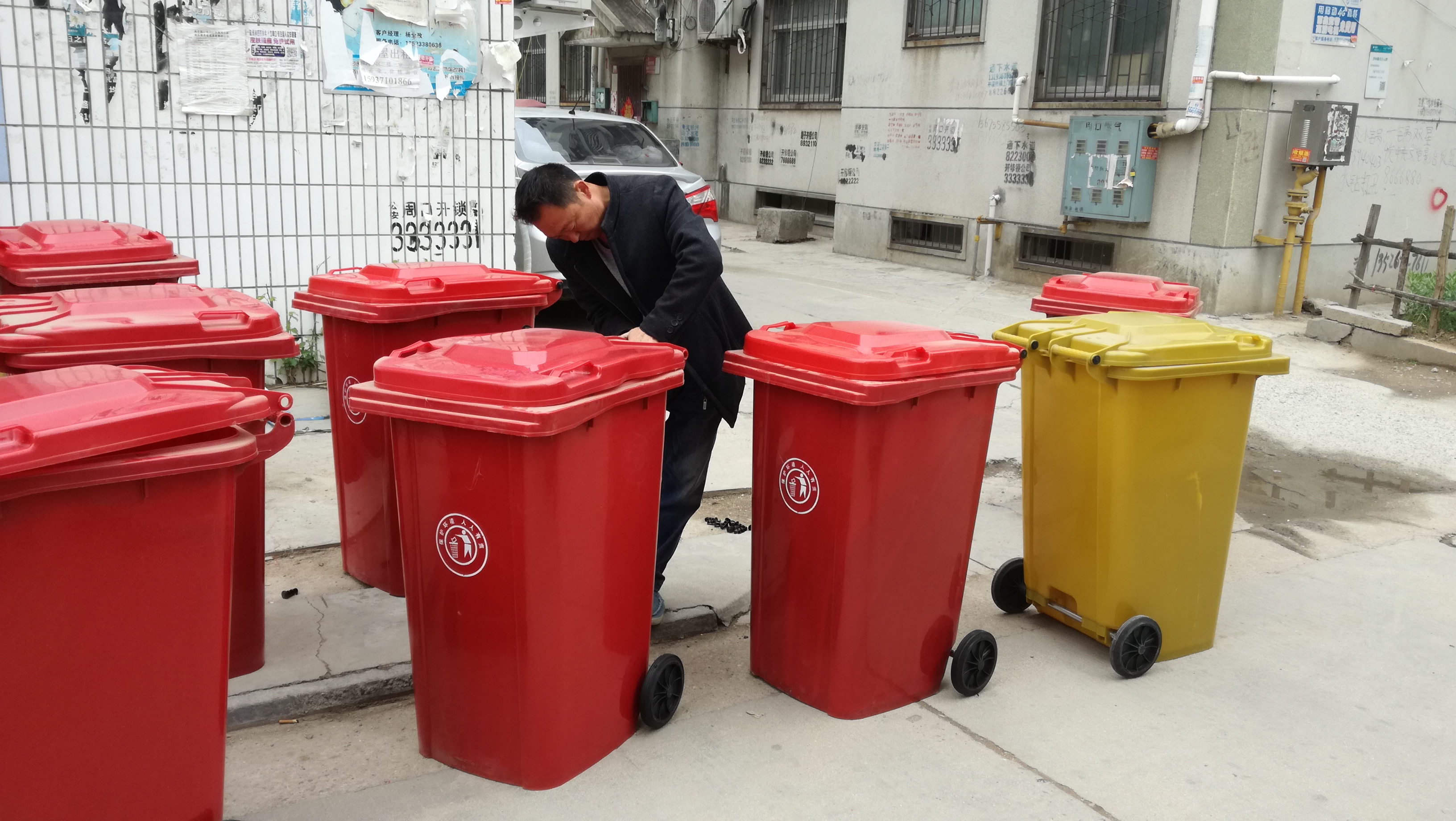 4月25日,在川匯區(qū)七一路辦事處潁河社區(qū)潁河小區(qū)內(nèi),辦事處工作人員按照“創(chuàng)衛(wèi)”標(biāo)準(zhǔn)要求對該小區(qū)敞開式垃圾道進(jìn)行封堵,并配置了移動(dòng)式垃圾桶。 記者 牛思光 攝