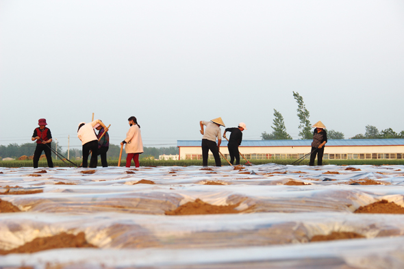 4月27日,留守婦女鐘點工在商水縣郝崗鎮(zhèn)東洄村劉雙翼的煙葉示范田中移栽、管理煙苗。郝崗鎮(zhèn)把煙葉生產(chǎn)作為扶貧產(chǎn)業(yè)來抓,在幫助種煙大戶流轉(zhuǎn)土地的同時,推廣優(yōu)質(zhì)品種栽植、節(jié)水灌溉新技術(shù),提高煙葉品質(zhì),增加煙農(nóng)收入。
