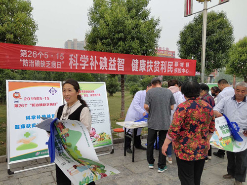 此次宣傳活動正值鄲城縣萬人健步走啟動儀式即將開始,近千名市民先后來到展臺前積極咨詢,宣傳收到了事半功倍的效果?;顒又校ぷ魅藛T向市民發(fā)放3000余份防治碘缺乏病宣傳折頁、宣傳畫、科學用鹽小常識,送出500多個印有補碘知識的環(huán)保手提袋,并講解碘缺乏病的危害、怎樣科學補碘、如何辨別真假碘鹽等知識,切實提高大家鑒別碘鹽、科學補碘的能力。