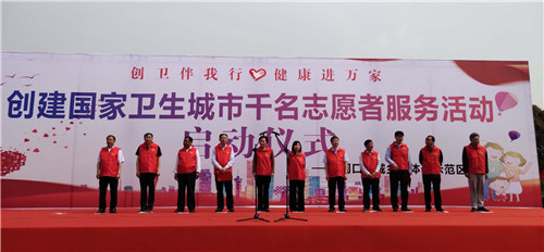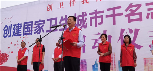 儀式現(xiàn)場,閆立超宣布創(chuàng)建國家衛(wèi)生城市志愿服務(wù)活動正式啟動。