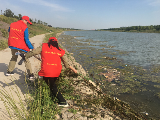 雖然當(dāng)天氣溫創(chuàng)下我市入夏以來(lái)的新高,但志愿者們?nèi)詼?zhǔn)時(shí)來(lái)到集合地點(diǎn)開展巡訪活動(dòng)?;顒?dòng)開始后,志愿者們來(lái)到了沙潁河風(fēng)景區(qū)的鐵路風(fēng)情廣場(chǎng)東側(cè),發(fā)現(xiàn)這里的一處電力井蓋破損嚴(yán)重。沒(méi)過(guò)多久,志愿者們發(fā)現(xiàn)附近河段中有許多水草和漂浮物。由于河邊濕滑,又沒(méi)有清理工具,志愿者們?cè)诖_保自身安全的前提下,將部分漂浮物撈到岸邊并放進(jìn)了垃圾箱中。由于水草和漂浮物太多,志愿者們的努力顯得杯水車薪。