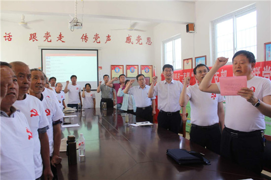 縣教體局黨組書記、局長劉現營,城郊鄉(xiāng)鄉(xiāng)長王忠,縣教體局機關一支部書記、主任科員張本寶,城郊鄉(xiāng)副鄉(xiāng)長晉惠萍等帶領與會黨員舉起右拳,挺起胸膛,莊嚴宣誓,重溫了入黨誓詞。