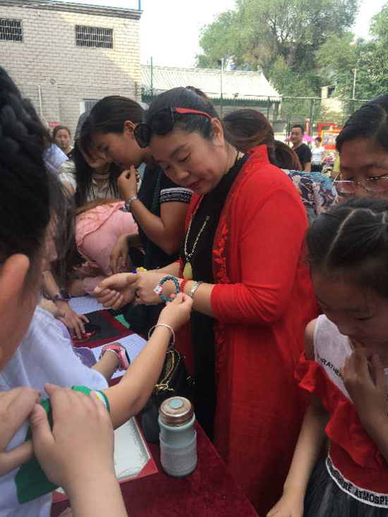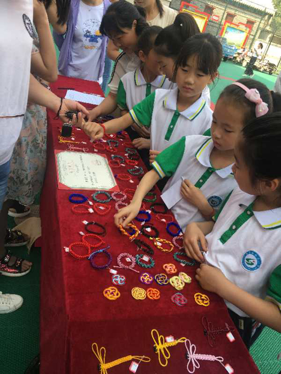 5月25日上午,沈丘縣中國結(jié)第七代傳承人李?;ㄗ哌M(jìn)槐店鎮(zhèn)回民小學(xué),和學(xué)校“中國結(jié)”手工編織興趣班的20名學(xué)生舉行“愛心義賣,情暖校園”主題活動(dòng)。不到半小時(shí),100多件作品被搶購一空還預(yù)定了很多。據(jù)悉,這次義賣共得到1200余元,將全部捐給“槐店鎮(zhèn)中心學(xué)校教育基金”,用來資助該鎮(zhèn)經(jīng)濟(jì)困難師生、獎(jiǎng)勵(lì)優(yōu)秀教師和學(xué)生、資助教育教研等重大活動(dòng)項(xiàng)目。