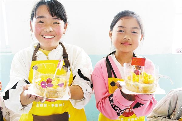 為慶?!傲弧?,日前,團(tuán)市委組織我市青年志愿者和愛心人士到西華縣李方口小學(xué)和幾十名留守兒童一起做蛋糕。圖為留守兒童展示自己做的蛋糕。記者 王凱 攝
