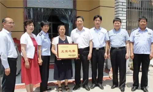 6月25日,河南省見(jiàn)義勇為基金會(huì)副理事長(zhǎng)劉玉虎、秘書長(zhǎng)鄭獻(xiàn)春一行來(lái)到鄲城縣見(jiàn)義勇為模范稱號(hào)的王軍生家中,劉玉虎親自將“光榮之家”的牌匾送到王軍生的愛(ài)人韓香手中。周口市公安局黨委委員、政治部主任郭冰,政治部副主任李亞鵬,基金會(huì)周口分會(huì)秘書長(zhǎng)王鑫,鄲城縣委副書記、政法委書記崔衛(wèi)國(guó),鄲城縣公安局政委趙紅建,鄲城縣公安局黨委委員、政工室主任李越,鄲城縣洺南辦事處書記張杰等參加了授牌。
