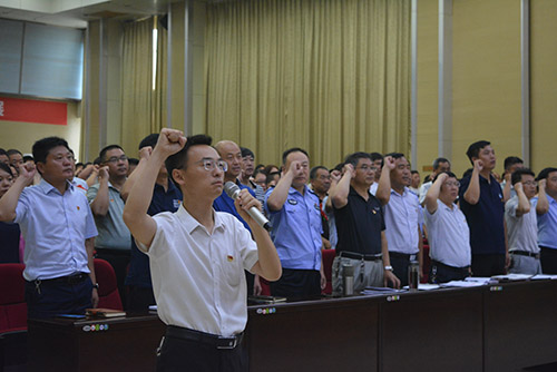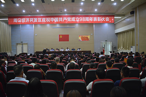 上午9點(diǎn),會(huì)議在國歌聲中開幕。會(huì)上,開發(fā)區(qū)黨委對(duì)先進(jìn)基層黨組織、優(yōu)秀基層黨支部書記、優(yōu)秀共產(chǎn)黨員、優(yōu)秀黨務(wù)工作者和學(xué)習(xí)標(biāo)兵進(jìn)行表彰。全體與會(huì)人員面向黨旗,重溫入黨誓詞。黨委書記王文峰為大家上黨課。