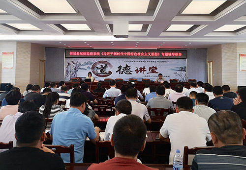 為進(jìn)一步推動鄲城縣紀(jì)檢監(jiān)察干部深入學(xué)習(xí)貫徹黨的十九大精神,自覺用“習(xí)近平新時代中國特色社會主義思想”武裝頭腦、指導(dǎo)實(shí)踐、推動工作,按照全縣紀(jì)檢監(jiān)察系統(tǒng)“鑄鐵軍、塑形象、再出發(fā)”活動計劃安排,6月28日,鄲城縣紀(jì)委邀請縣委黨校教員鄭紅霞為全縣紀(jì)檢監(jiān)察干部做了一場“習(xí)近平新時代中國特色社會主義思想”專題輔導(dǎo)報告。