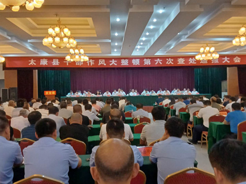 7月2日,太康縣在宏泰酒店東三樓召開全縣干部作風大整頓第六次查處通報大會。王國璽、李錫勇、張思民、王建林等縣副處級以上領(lǐng)導干部,縣委各部委辦常務(wù)副職,縣直各單位黨政正職,各鄉(xiāng)鎮(zhèn)黨委書記、鄉(xiāng)鎮(zhèn)長、紀委書記、派出所長,縣紀委監(jiān)委全體班子成員、各派駐紀檢組長、各綜合治理工作組全體成員,縣委巡察辦主任、各巡察組組長,部分人大代表、政協(xié)委員和村黨支部書記代表參加會議。會議由縣委副書記、縣長李錫勇主持。