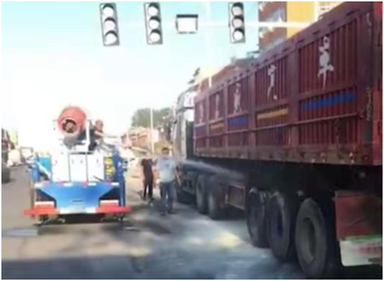 7月6日早上6時40分,一輛貨車由東至西行駛到西扶超限檢測站負(fù)責(zé)的環(huán)保檢測卡點(diǎn)時輪胎突然起火,執(zhí)法人員發(fā)現(xiàn)后,立即用車載喇叭喊話提醒司機(jī)停車,此時車輛正好停在值勤卡點(diǎn)紅綠燈處,一旦火勢不受控制,將給司機(jī)及周邊群眾帶來不可預(yù)測的危險與損失,帶班站長李建東一邊組織人員進(jìn)行救火,一邊通知站長劉洪亮。得到警情后,劉洪亮站長立即組織增援,同時指令張光輝、劉伯倫駕駛站內(nèi)高壓撒水車迅速趕往事故現(xiàn)場,經(jīng)過共同努力,著火處被撲滅,避免了一場火災(zāi)事故的發(fā)生。事后,貨車司機(jī)十分感動,拉著執(zhí)法人員的手深表謝意。