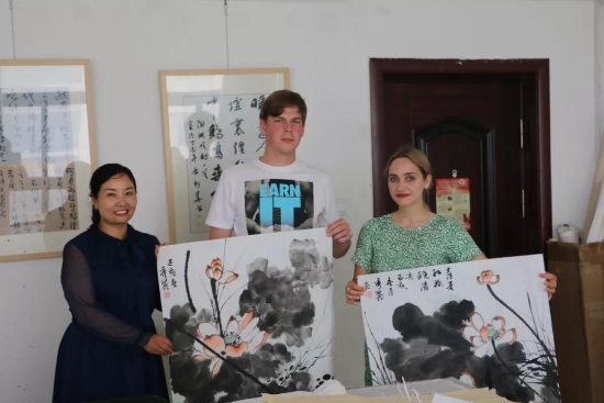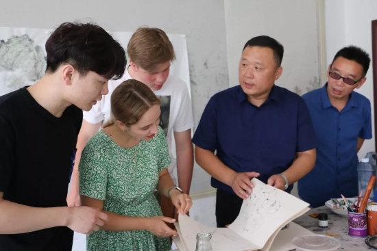 鹿邑本土畫家劉龍飛畫的花鳥栩栩如生引起俄羅斯青年畫家們的嘖嘖稱嘆。兩位青年畫家通過翻譯告訴記者,中國(guó)畫歷史悠久、博大精深,看到兩位老師的畫作形神兼?zhèn)洌瑲忭嵣鷦?dòng),真是不虛此行,感謝贈(zèng)送的佳作,他們一定珍藏。據(jù)悉,本次活動(dòng)他們將以國(guó)際藝術(shù)志愿者的身份、以西方人的視角描繪老子故里的美景,他們走進(jìn)明道宮、太清宮等景點(diǎn)實(shí)地寫生,并走美術(shù)學(xué)校為孩子們輔導(dǎo)繪畫并帶來世界名校的繪畫理念。