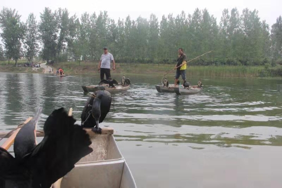 悄悄地,漁船輕移,飄至河心。船家一聲令下,鸕鶿箭一般竄入河中,或撲棱翅膀,搏擊水面,或緊追游魚,銜進(jìn)口中。采風(fēng)團(tuán)成員,緊盯鸕鶿銜魚,快按鏡頭,收獲一張張豐收畫面。