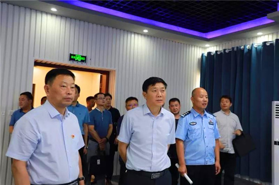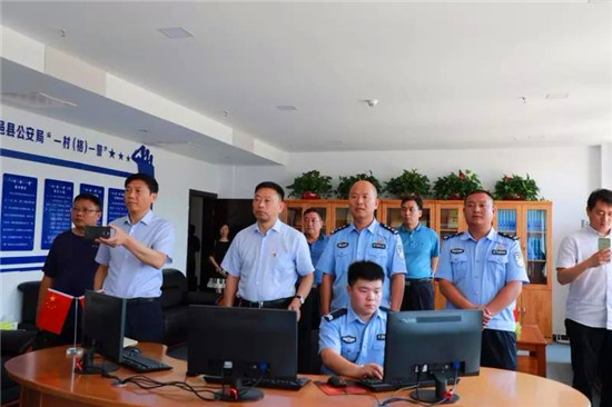 7月21日,平頂山市葉縣縣委常委、政法委書記王旭,縣政府黨組成員、公安局局長李根太帶領公安、發(fā)改、財政等相關部門負責人,前來鹿邑縣考察學習“千村萬星”視頻監(jiān)控雪亮工程建設及“一村(格)一警”工作開展情況。鹿邑縣委副書記、政法委書記許四軍陪同參觀。