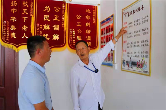 老人說(shuō),他是2018年初加入“幸福調(diào)解室”的,“當(dāng)時(shí),我剛從外地回來(lái),路過(guò)楊廟看到有人臨街房前懸掛調(diào)解室招牌,就報(bào)名加入了調(diào)解室隊(duì)伍。”