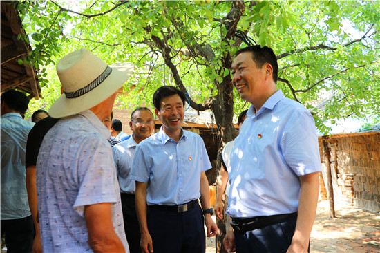持續(xù)的高溫天氣,整個(gè)大地?zé)岬孟裾艋\一樣,讓人感覺每一根毛孔都在往外冒汗。當(dāng)日上午,閆立超先后到了高莊、侯莊、曾莊等村莊,走村入戶,深入調(diào)研。每到一戶,閆立超與貧困戶交談,傾聽他們的想法和訴求,并詢問住房、教育、醫(yī)療等各項(xiàng)扶貧政策享受到?jīng)]有,家中年收入多少,目前還有什么困難問題,對(duì)扶貧工作滿不滿意。知曉了貧困戶目前的困難后,閆立超當(dāng)場與相關(guān)部門、屬地鄉(xiāng)辦商議探討解決問題的辦法。