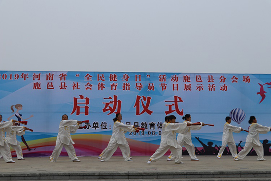 8月8日,鹿邑縣2019年“全民健身日”活動啟動儀式在上清湖文化廣場舉行。來自鹿邑民間的紅舞姿舞蹈隊的隊員們以一曲《讓中國更美麗》開場,給現(xiàn)場觀眾送上了一場精彩紛呈的“文藝大餐。