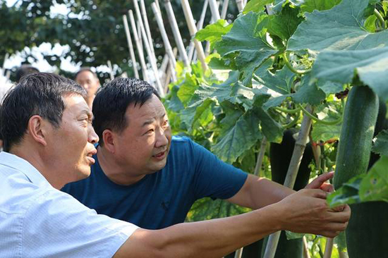 炎炎夏日,大棚下的侯俊昌汗水再次濕透,他撫摸著一串串紫紅色的葡萄說,這都是改變貧窮的“紫珍珠”啊,只要我們班子上下齊心協(xié)力,小小的葡萄也能幫我們“拔掉窮根?!辈粌H僅是葡萄產(chǎn)業(yè),村里的婦聯(lián)主任徐桂蘭也主動帶頭創(chuàng)業(yè),承包了80畝的田地,種起了優(yōu)質(zhì)冬瓜,畝產(chǎn)上萬斤,通過駐村幫扶,提供產(chǎn)銷信息,遠(yuǎn)銷到省內(nèi)外多地。秋季種小麥、夏季種冬瓜的模式,畝產(chǎn)收益均在4000元以上。她平時鼓勵村里貧困戶到冬瓜地打工,每年帶動近20戶貧困戶,每戶增加收益近5000元?!焙羁〔嬖V我們,“產(chǎn)業(yè)扶貧,造血扶貧在位口村已經(jīng)深深扎根,同時也吸引了很多在外務(wù)工的有識青年返鄉(xiāng)創(chuàng)業(yè),有的做起了尾毛生意、有的做起了毛刷生意?,F(xiàn)在全村興起人人講創(chuàng)業(yè),戶戶拼經(jīng)濟(jì)的良好氛圍?!?/p>