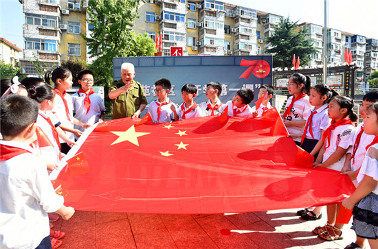 滿頭白發(fā)、一身黃軍裝的抗美援朝老戰(zhàn)士王文華,站在國旗臺下,整理旗繩,引人注目。他今年85歲,是此次升旗儀式的升旗手。10年前,王文華在文苑社區(qū)捐建市區(qū)首座居民小區(qū)國旗臺。在本報倡導(dǎo)之下,全城掀起“紅色旋風(fēng)”,相繼建立20多座小區(qū)國旗臺。10年來,王文華心中始終澎湃著愛國情懷,每到國慶節(jié)等重大節(jié)日,都會帶領(lǐng)社區(qū)部分居民一同升國旗,使國旗臺成為了社區(qū)的愛國主義教育基地,他還因此上了央視《新聞聯(lián)播》。