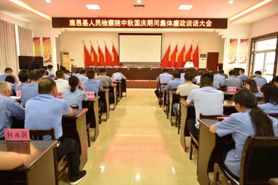中秋節(jié)、國慶節(jié)即將來臨,為加強節(jié)日期間黨風廉政建設,以實際行動展現(xiàn)檢察隊伍遵規(guī)守紀的過硬作風,9月 9日,鹿邑縣人民檢察院召開中秋、國慶“雙節(jié)”期間集體廉政談話大會。