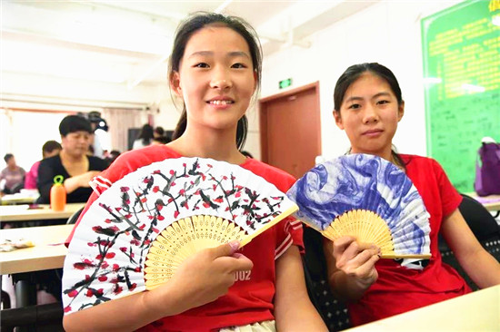 水印畫(huà)、畫(huà)扇面、穿扇衣……7月23日,北京市懷柔區(qū)泉河街道新賢家園社區(qū)開(kāi)展“DIY手工水印折扇,喜迎祖國(guó)70華誕”主題活動(dòng),40余名青少年共同學(xué)習(xí)體驗(yàn)水印折扇的文化和樂(lè)趣。