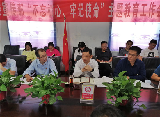 9月18日下午,縣委宣傳部召開“不忘初心、牢記使命”主題教育工作會(huì)議,學(xué)習(xí)習(xí)近平總書記在“不忘初心、牢記使命”主題教育會(huì)議上的講話,深入貫徹落實(shí)中央、省委、市委和縣委“不忘初心、牢記使命”主題教育工作會(huì)議精神,安排部署部機(jī)關(guān)“不忘初心、牢記使命”主題教育工作。