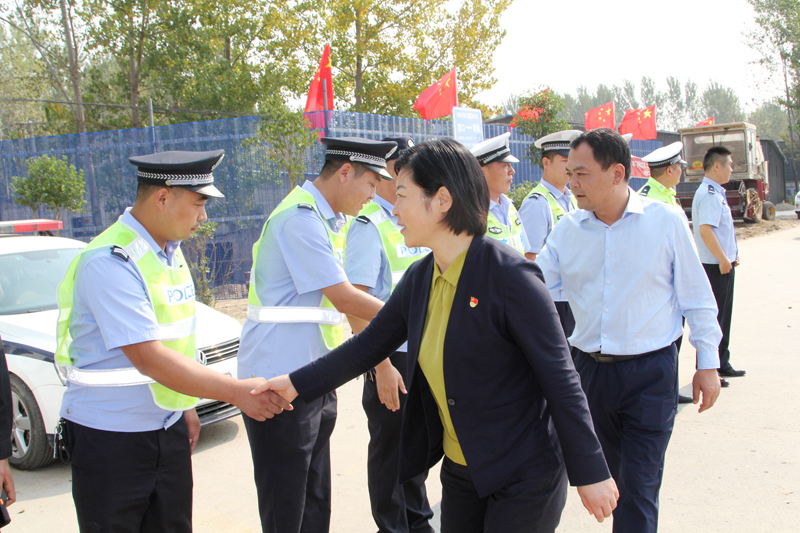 國(guó)慶前夕,鄲城民警踐行新使命、忠誠(chéng)保大慶。全警投入堅(jiān)守一線,守護(hù)一方安全。9月27日,鄲城縣委書記羅文閣帶領(lǐng)縣四個(gè)班子領(lǐng)導(dǎo)到南關(guān)派出所、公安交通臨時(shí)檢查站、縣公安局等地看望慰問一線值班民警,向他們表示衷心感謝和親切問候??h領(lǐng)導(dǎo)李全林、崔衛(wèi)國(guó)、李建軍、馬超、縣公安局局長(zhǎng)陳鳳祥、政委趙紅建、縣政府黨組成員張仁杰等參加慰問。