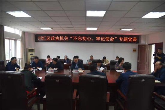 川匯區(qū)政協(xié)黨組副書記、副主席梁顯棟,副主席王建國、黃婉真、馬淮海及機(jī)關(guān)黨員干部聆聽黨課。