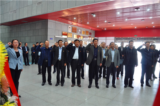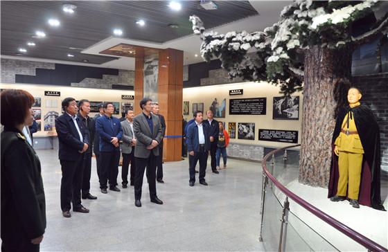 田林、張峰、李德來(lái)、孫培忠等首先來(lái)到吉鴻昌銅像廣場(chǎng),瞻仰英雄英姿,追憶將軍的浩然正氣和愛(ài)國(guó)情懷。步入展 廳,縣委常委、組織部長(zhǎng)劉和輝帶領(lǐng)參觀人員重溫入黨誓詞。