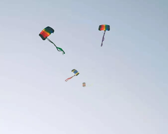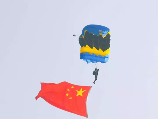 “看,跳傘表演開始了。”10月29日上午,周口西華通用機(jī)場首航儀式結(jié)束后,一場精彩絕倫的飛行表演就開始了。載著跳傘運(yùn)動(dòng)員的飛機(jī)起飛到指定地點(diǎn)后,運(yùn)動(dòng)員攜帶著國旗和彩帶從高空中跳下,打開傘包后,空中五顏六色十分漂亮,引得圍觀群眾不時(shí)叫好。