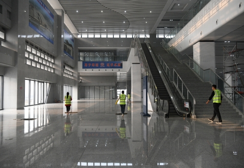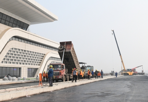 11月8日下午,記者再次來(lái)到鄭阜高鐵周口東站,看到一片熱火朝天的施工景象。伴隨著高鐵即將開(kāi)通,工人緊張施工,施工進(jìn)度一天一個(gè)樣,確保如期交付使用。圖一落客平臺(tái)進(jìn)入鋪油階段。圖二站前廣場(chǎng)緊張施工中。圖三候車(chē)大廳進(jìn)入精細(xì)化保潔。