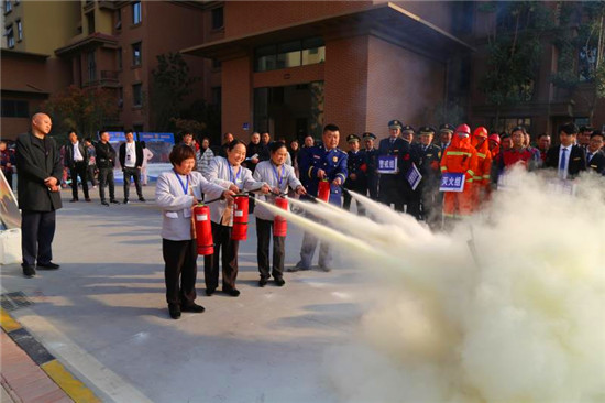 記者在現(xiàn)場看到,隨著消防警鈴的響起、煙霧的彌漫,來自物業(yè)公司和社區(qū)的數(shù)十名群眾彎著腰,同時用濕毛巾捂著口鼻,緊急而有序地從步梯撤出,與此同時,消防隊員迅速將消防水袋和槍頭同消防栓相連接,并打開消防栓對準(zhǔn)“火勢”,一瞬間,發(fā)生在建業(yè)社區(qū)的一場“火災(zāi)”被及時撲滅,現(xiàn)場圍觀的眾人爆發(fā)出陣陣掌聲。