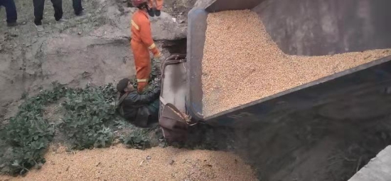 接警后,鄲城消防大隊(duì)立即出動(dòng)3輛消防車15名指戰(zhàn)員前往處置。經(jīng)偵查發(fā)現(xiàn),側(cè)翻車輛是一輛農(nóng)用三輪車,車上拉有約2噸散裝玉米?,F(xiàn)場(chǎng)玉米灑落一地,駕駛員約六十歲,左腿被農(nóng)用三輪車前輪壓住,無(wú)法脫身,加之即將天黑,當(dāng)時(shí)天氣較冷,如不及時(shí)處置,后果不堪設(shè)想。