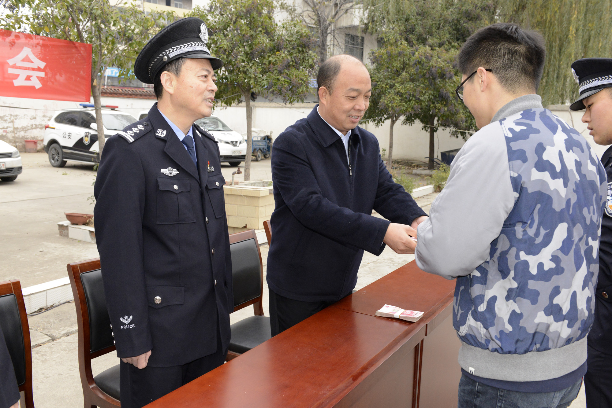 11月26日,扶溝縣公安局舉行公開(kāi)退贓大會(huì),將破案繳獲的190萬(wàn)元贓款及摩托車(chē)、電動(dòng)車(chē)、手機(jī)、金銀首飾等贓物分別發(fā)還給受害群眾??h委副書(shū)記、政法委書(shū)記詹凱出席活動(dòng)并講話(huà)??h公安局刑偵大隊(duì)全體民警、部分被盜搶財(cái)物失主參加大會(huì)。會(huì)議由縣政府黨組成員、縣公安局黨委書(shū)記、局長(zhǎng)田豪杰主持大會(huì)。