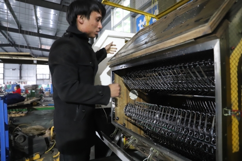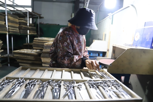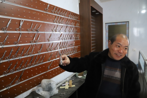 “我也是從小就外出,一直在江蘇蘇州發(fā)展,做刀剪十幾年了。現(xiàn)在家鄉(xiāng)環(huán)境好,回來(lái)發(fā)展比在南方還有前途?!苯衲?9歲的陳政治老家是虎崗鄉(xiāng)陳莊村。被虎崗鄉(xiāng)黨委政府的誠(chéng)意所感動(dòng),他很樂(lè)意回鄉(xiāng)發(fā)展,因?yàn)榉孔鈨r(jià)格低、務(wù)工人員穩(wěn)定,營(yíng)商環(huán)境又好,所以他帶著自己的外甥楊亞杰和技術(shù)團(tuán)隊(duì)回到老家鄲城,還能助力家鄉(xiāng)經(jīng)濟(jì)發(fā)展。陳政治說(shuō),他的廠子所生產(chǎn)的東升、jack、亞寶等品牌刀剪全部銷往全國(guó)高檔理發(fā)店,產(chǎn)品供不應(yīng)求。像這樣的高檔刀剪生產(chǎn)廠家,在中原地帶極少。剛投產(chǎn)幾個(gè)月,他已經(jīng)接到了來(lái)自韓國(guó)、日本等地的訂單。