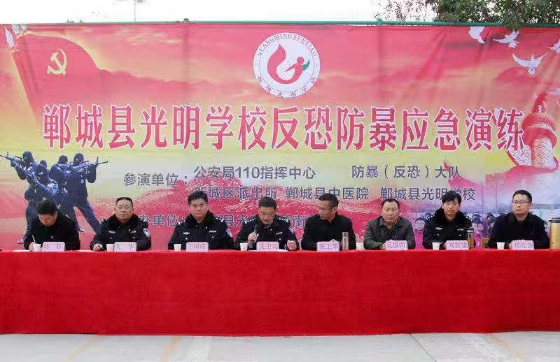 為切實做好“平安校園”建設(shè)工作,進一步增強全縣師生對突發(fā)暴恐事件的防范意識,提升在面對暴恐事件時自護自救及有效逃生避險能力,最大限度減少因突發(fā)暴恐事件對師生造成的傷害,提高學(xué)校安全保衛(wèi)應(yīng)急處置和管理水平,12月20日上午,鄲城縣反恐辦組織相關(guān)單位在光明中學(xué)開展防暴恐知識培訓(xùn)和演練。