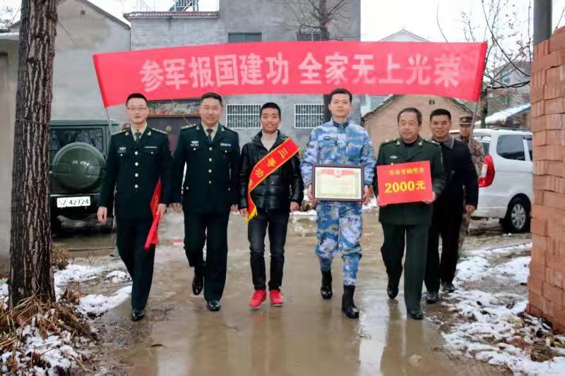 就在這樣一個瑞雪初降喜盼豐年的日子,穆店鄉(xiāng)四大王村熱鬧非凡。鹿邑縣人武部、退役軍人事務局、穆店鄉(xiāng)政府帶領96766部隊人員,專程來到從該村入伍的三級士官李龍家中,送上三等功喜報和慰問金。面對鄉(xiāng)親們羨慕的目光,李龍的母親陳秀英興高采烈地說:“俺要叮囑兒子繼續(xù)在部隊好好干,爭取再立新功!”