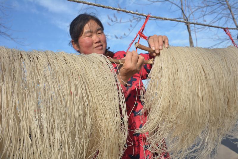 “我們是附近大朱莊村的,承包了30多畝地,主要種植西瓜紅薯等經(jīng)濟(jì)作物,效益不錯。今天在程小忠這里加工純手工紅薯粉條,他還承諾幫助我們銷售,俺打心眼里高興啊……”正在晾曬粉條的朱勝民、王秀蓮夫婦一臉興奮。
