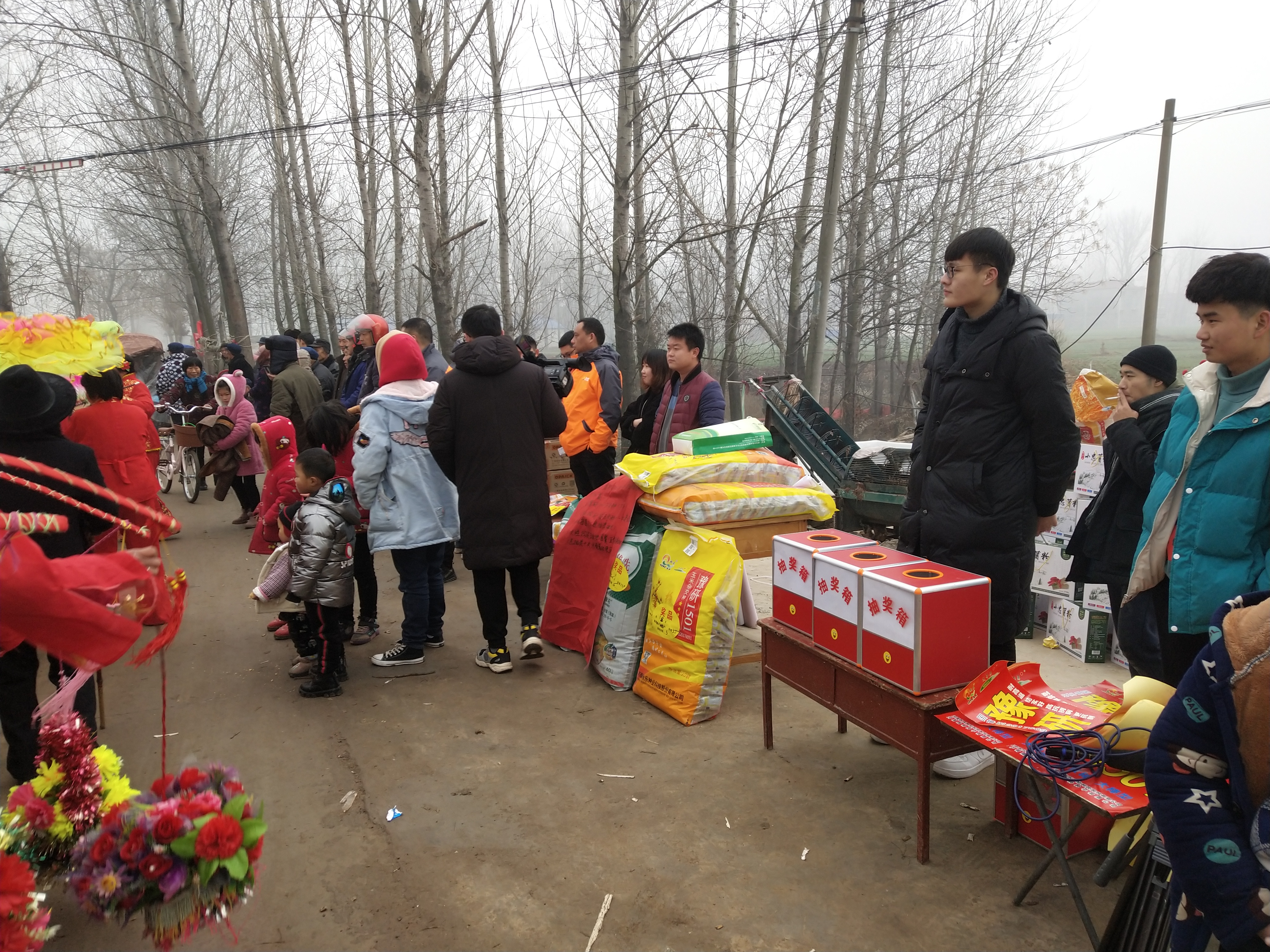 沒有鮮花、沒有禮炮、沒有舞臺、沒有相關(guān)單位參加、沒有任何領(lǐng)導(dǎo)講話,空地上只有一些民間藝人在扭秧歌、挑花籃、跳廣場舞;大門口簡單設(shè)置了幾個種子肥料小展臺和幾個抽獎箱;屋內(nèi)庫房內(nèi)擺滿了成箱成捆子的粉條;不遠(yuǎn)處的路邊地頭扯起來的長繩掛滿了剛出“凍房”的濕粉條。
