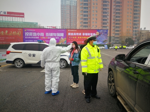 1月27日,寧洛高速沈丘縣收費站口,地方交警和醫(yī)護工作人員正在對每一臺下高速的車輛上的司乘人員進行體溫測量,檢查行駛證、駕駛證和身份證。目前,周口市境內(nèi)各收費站和服務(wù)區(qū)設(shè)立衛(wèi)生檢疫站,配備體檢測溫設(shè)備,對每一臺下高速的車輛上的司乘人員進行體溫測量,檢查行駛證、駕駛證和身份證。同時,要求各單位每天要對設(shè)施和停靠交通工具消毒,室內(nèi)要保持通風。