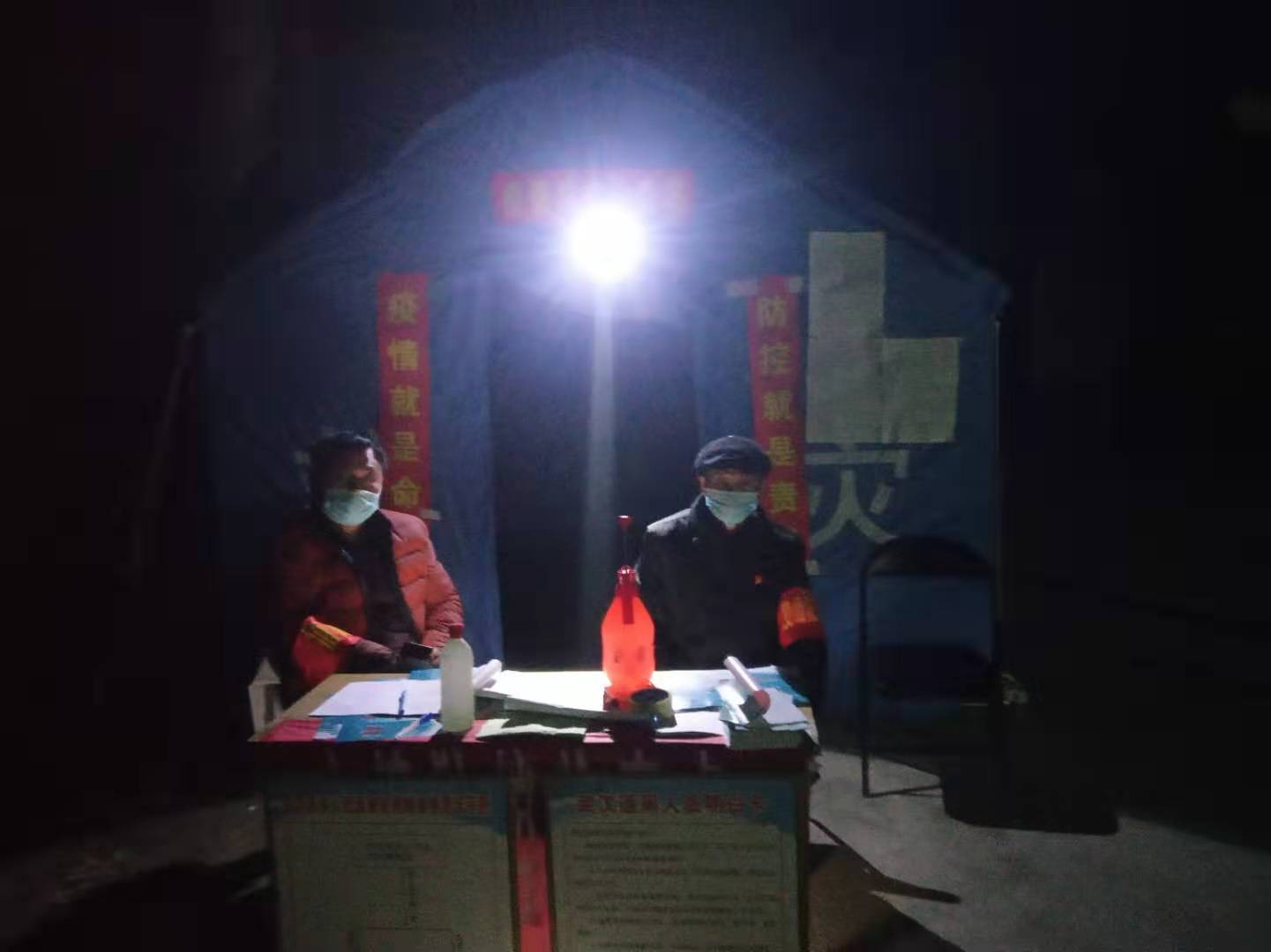北岳村是白寺鎮(zhèn)最大的村,有大小出村路口20多個(gè),疫情防控難度大。該村除村干部、村醫(yī)以外,又動(dòng)員了教師、黨員、志愿者80余人參與卡點(diǎn)值班。自1月26日大年初二設(shè)立卡點(diǎn)以來(lái),24小時(shí)都有人值班,吃飯輪班,有的把飯送過(guò)來(lái)吃。晚上留專人住在帳篷里。9天來(lái),這個(gè)卡點(diǎn)已累計(jì)勸返人員280人次,勸返車輛80多輛次,登記進(jìn)出村莊人員430人次。